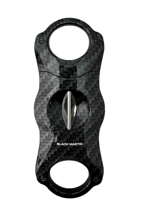 Black Martin Karbon Klasik V Puro Makası Kesici, geleneksel V kesimi modern karbon fiber görünümlü dış yüzeyle birleştirerek şıklık ve işlevselliği bir arada sunar. Ergonomik yapısı sayesinde kolay kavranır ve puroyu bozmadan dengeli, derin bir kesim sağlar.