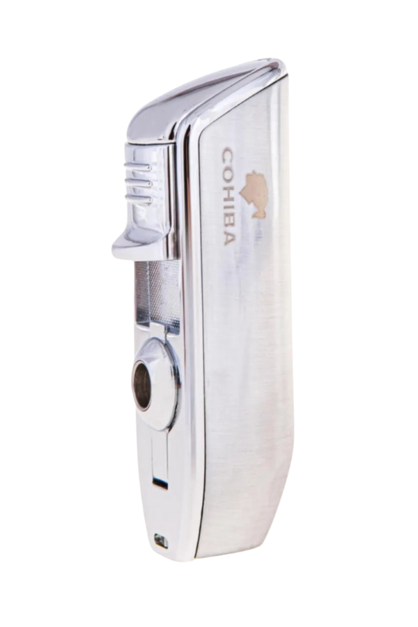 Cohiba 3 Torch Pürmüz Yan Ağız Gümüş Puro Çakmağı, puro severlere güçlü ateşleme ve hassas kontrol sunan mükemmel bir çakmaktır. Üçlü pürmüz başlıkları, her zaman hızlı ve eşit ateşleme sağlarken, gümüş rengi ve zarif tasarımıyla her ortamda şıklık yaratır. Yan ağız özelliği, puroyu düzgün bir şekilde ateşlemenize olanak tanır.