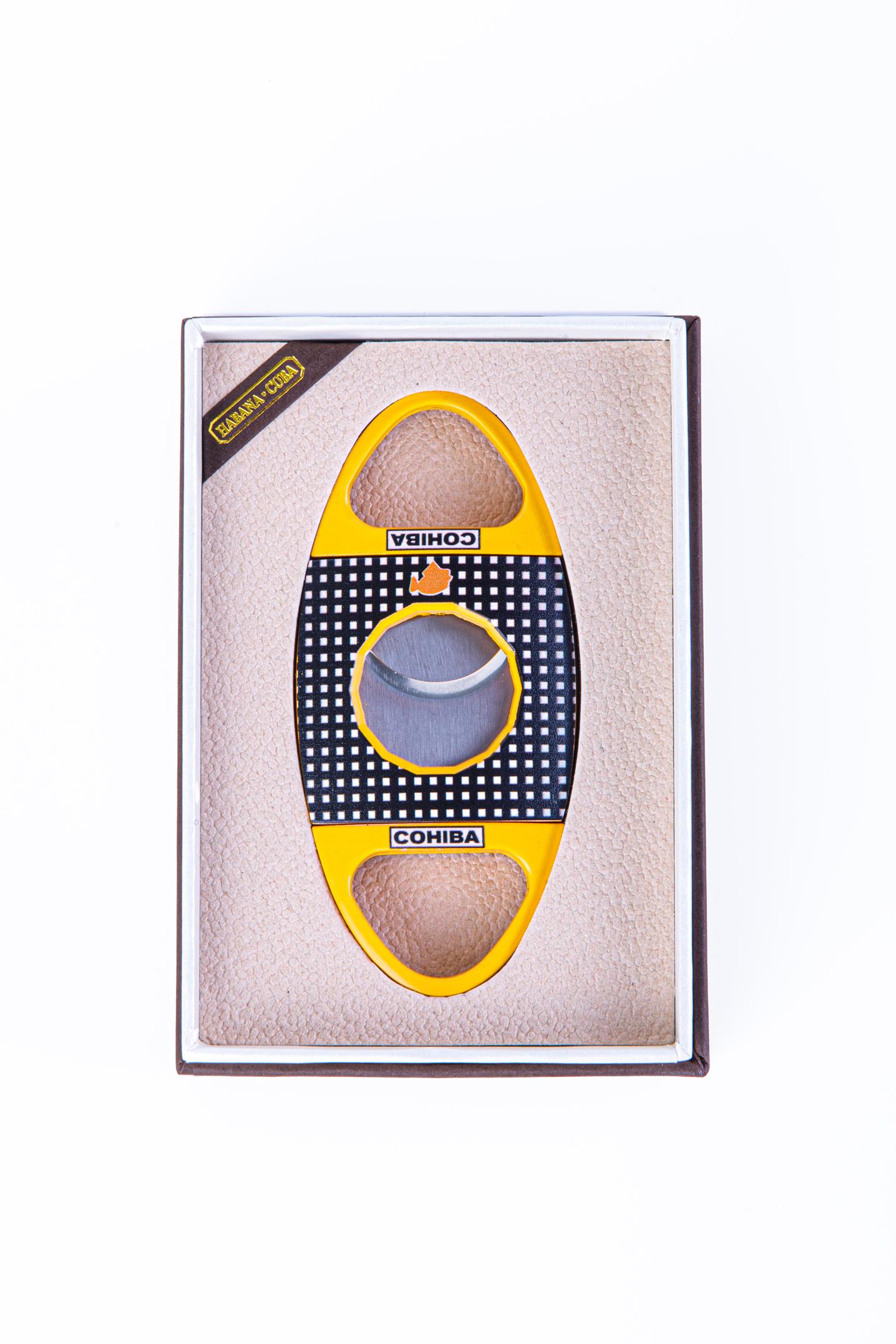 Cohiba Sarı-Siyah Metal Kesici, puro hazırlığını şık ve profesyonel bir deneyime dönüştürür.