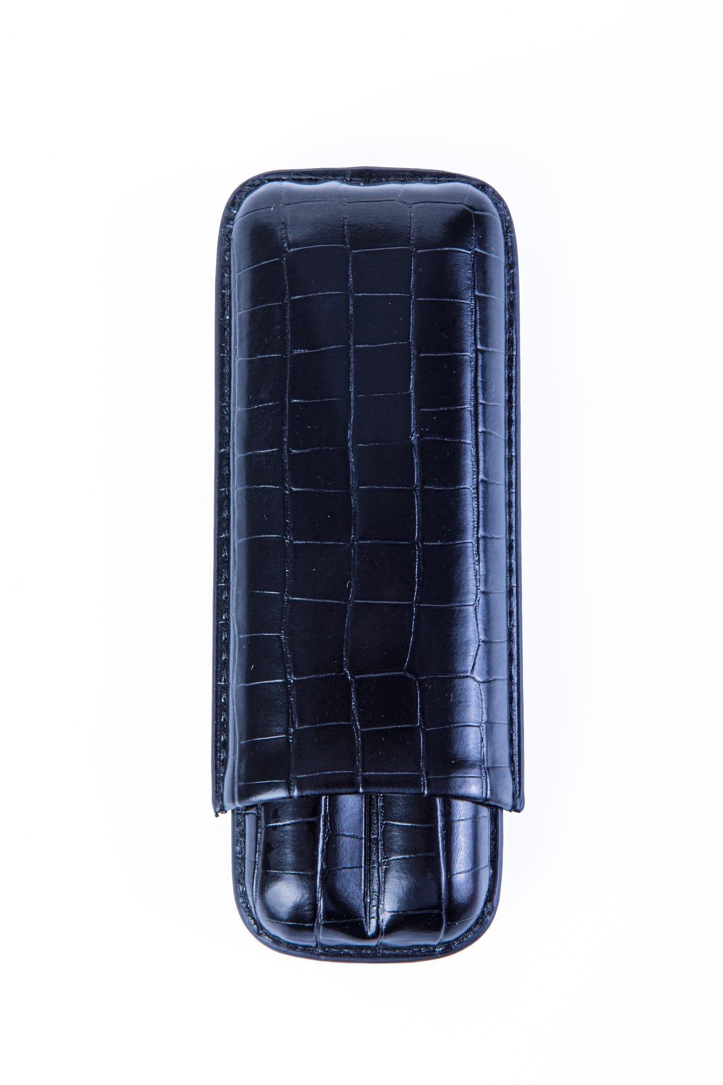 Cohiba Siyah Timsah Desenli İkili Deri Puro Kılıfı