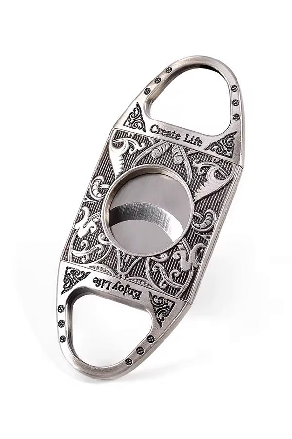PQ Gümüş Metal İşlemeli Baskılı Metal Puro Makası Kesici