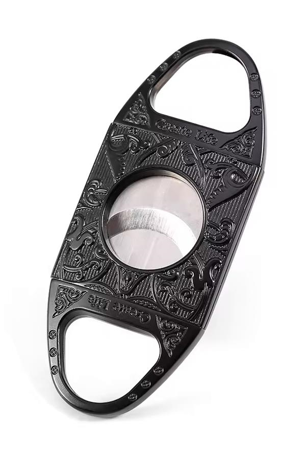 PQ Siyah Metal İşlemeli Baskılı Metal Puro Makası Kesici