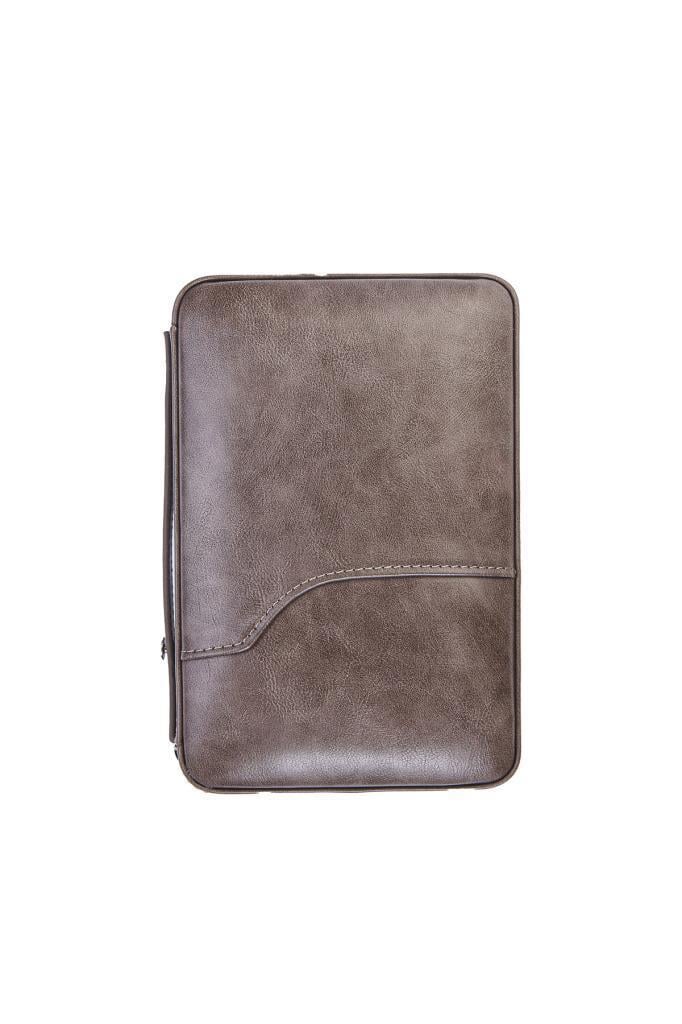 PQ Çakmak Kesicili Gri Deri Puro Taşıma Çantası