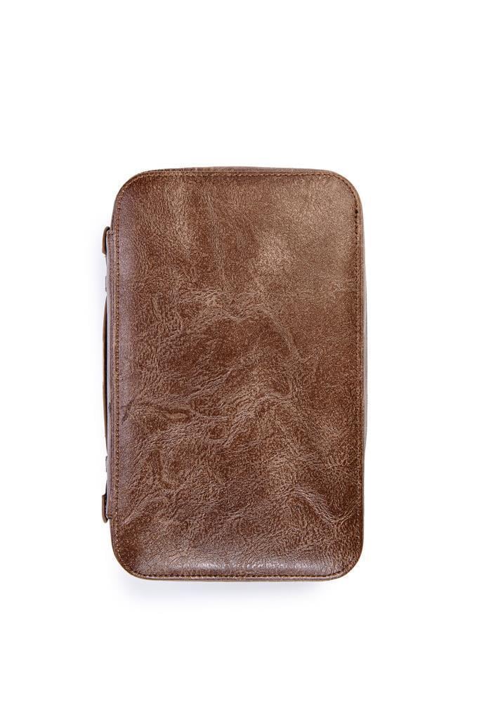 PQ Çakmak Kesicili Gri Deri Puro Taşıma Çantası
